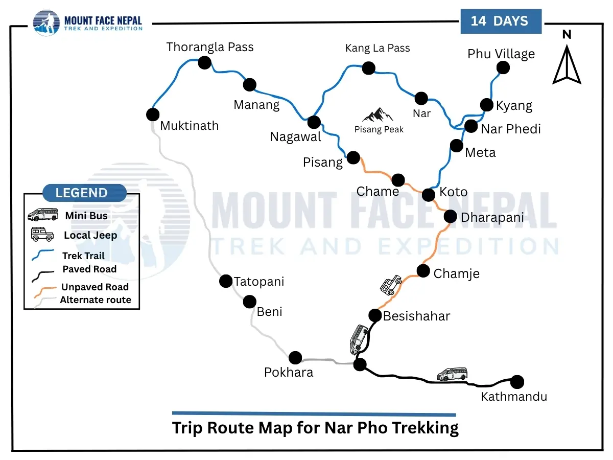 The best time for Nar Phu Valley Trek is during spring (March to May) and autumn (September to November), as these seasons offers stable weather, clear skies and comfortable temperatures, creating an ideal condition for trekking in this remote Himalayan region. During these months, the Nar Phu Valley Trekking in Nepal route offers crystal clear mountain views, dryer trails and the pleasant walking days across the high-altitude valleys. When following the scenic Nar Phu Valley Trek itinerary, trekkers pass through lush forests, alpine landscapes and traditional villages where blooming rhododendrons in spring and crisp mountain air in autumn adds the perfect beauty to the journey.
