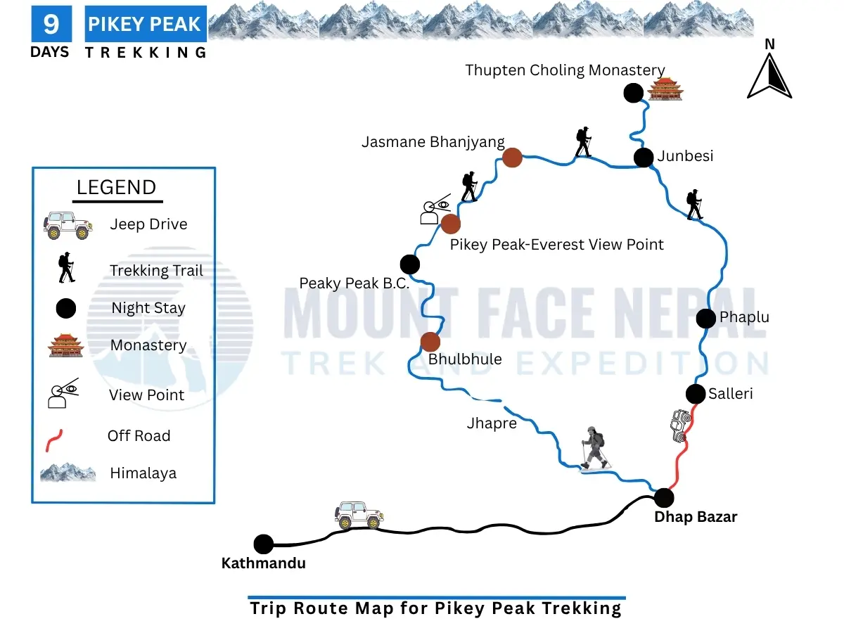 The journey of Pikey Peak Trekking in Nepal usually begins with the scenic Pikey Peak Trek from Kathmandu and follows a traditional Pikey Peak Trekking Route through charming Sherpa villages, monasteries and peaceful forests of Solukhumbu region. Considered as a beginner friendly Himalayan trek, the Pikey peak trek itinerary generally takes about 9-11 days and is often known as a short Everest view trek for travelers seeking an Everest Alternative Trek. Although many are curious about how difficult is Pikey Peak trek, the pikey peak trek difficulty remains moderate, making it suitable even for Pikey Peak trek for beginners.